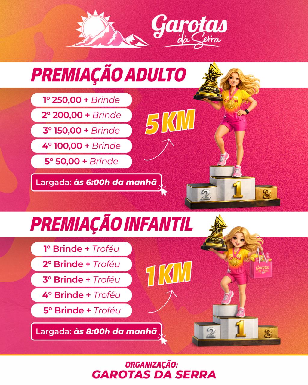 Premiação Geral >> 1ª 250,00 + brinde; 2ª 200 + brinde; 3ª 150 + brinde; 4ª 100,00 + brinde e 5ª 50,00 + brinde